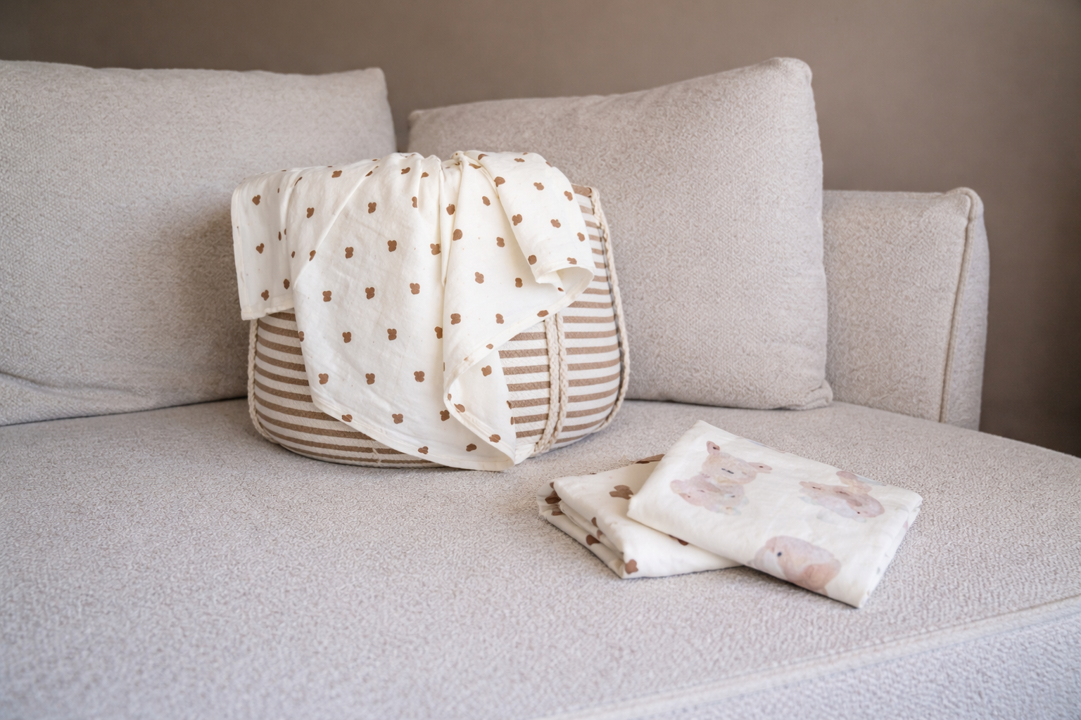 Verfijnde baby-essentials, ontworpen met zorg voor comfort, zachtheid en tijdloze stijl.